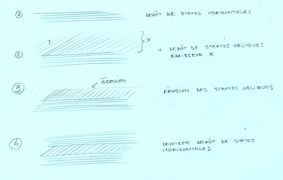 dans notre cas les lamines obliques angulaires sont comprises entre deux séquences à lamines à plan parallèle.