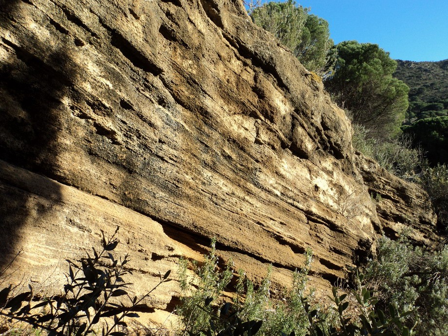Un dépôt est venu se rajouter ultérieurement par dessus les strates inclinées du 1º affleurement, on le voit nettement sur la photo.