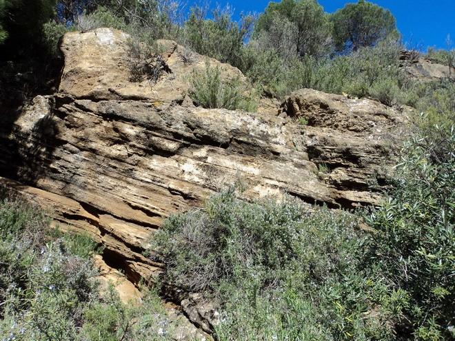 Affleurement suivant (nº2), dans la plupart des strates il y a des morceaux de roches anguleux:
