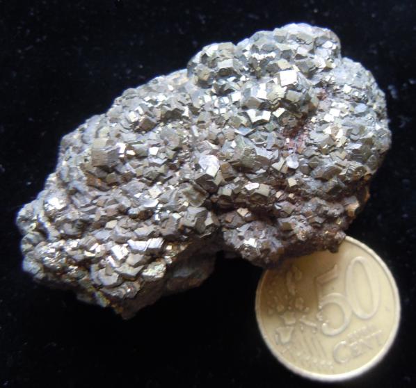 Une pièce de Potigny, la plaque fait 75 par 50mm les plus gros cristaux sont de l'ordre de 3-4mm