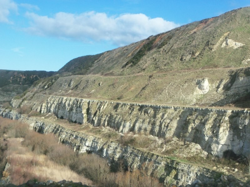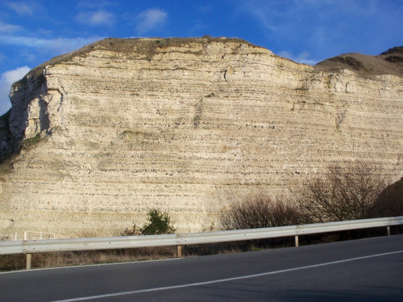 Et voici une photo de ce qu'il reste du gros éboulement de l'été dernier, juste un petit éperon rocheux, qui suite à l'éboulement s'était reposé sur la falaise mais qui depuis, semble s'écarter à nouveau. Dans ces blocs (Cénomanien, Turonien et Coniacien) du fossiles à chercher et à trouver, mais bon, pas très chaud tant que ce morceau n'est pas tombé.