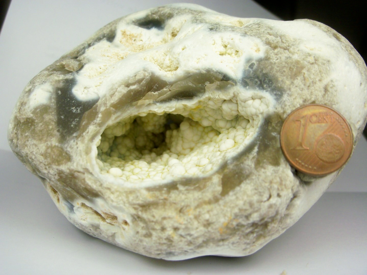 D'abord, un beau chou-fleur normand, comme pour le quartz, une belle géode mais l'ouverture (sans matériel adéquat) risque d'être hasardeuse donc pour l'instant, pas touche.