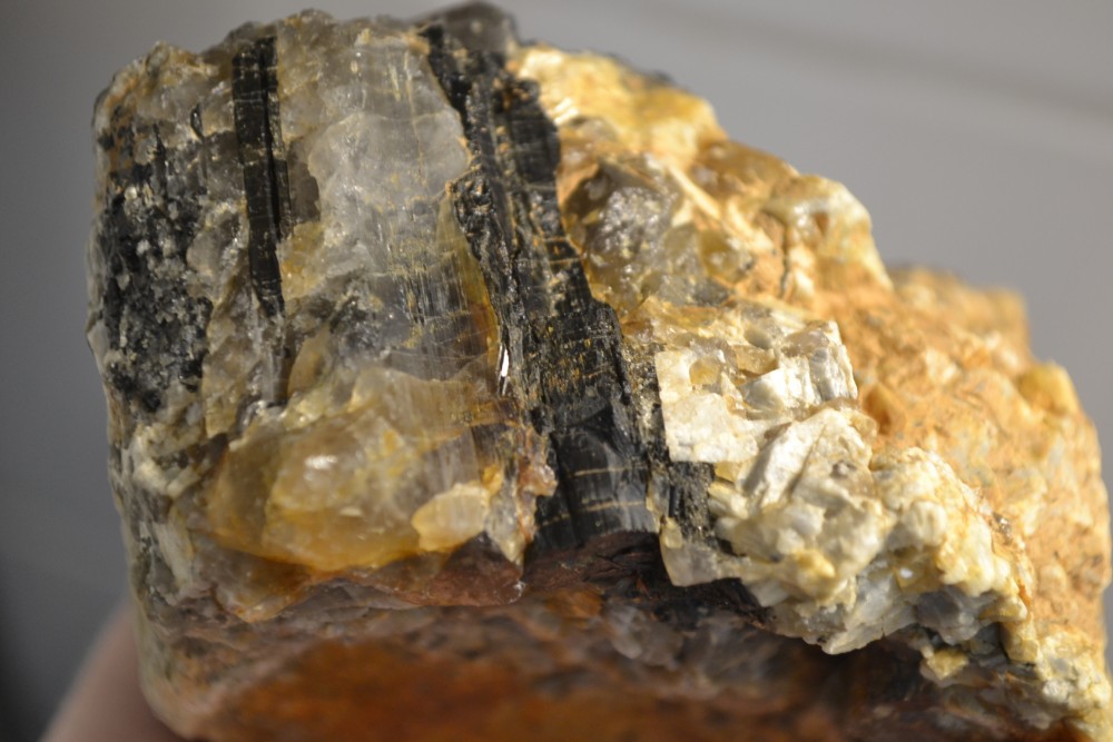 Merci, c'est la définition de roche encaissante que je n'avais pas (pour moi "ce qui encaisse la formation" c'était le granite et donc pas de pegmatite, c'est une erreur d’appréciation) ! donc oui gros cristaux avec tourmaline qui indique une refroidissement lent par le passage d'eau dans les failles dans l'ancienne chaîne de montagne, et de gaz (tourmaline ?). Il doit y avoir de beaux échantillons restant !