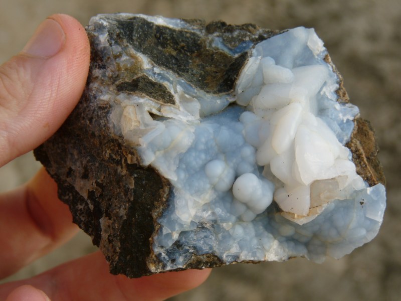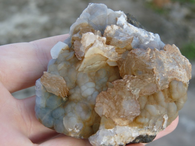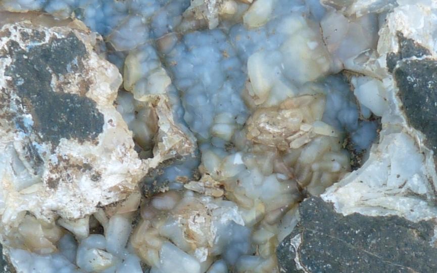 Calcedoines et agathes d'une belle couleur bleutée et calcite cristalisée en rhomboedre ou en étoile de Mercedes!.