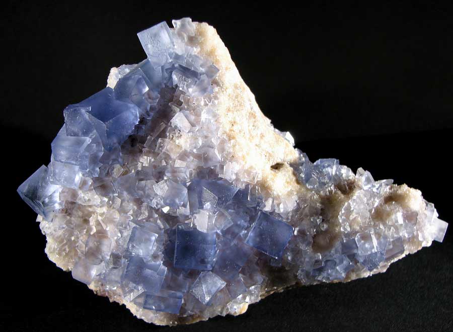 Fluorine, taille réelle : 10 x 8 cm, cubes jusqu'à 1 cm, Mine Blanchard, Nouveau-Mexique, USA.
