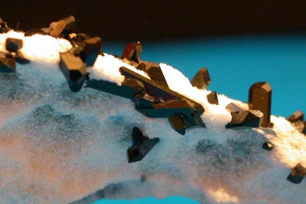 Une Hémimorphite bleue (+ bleue que sur la photo...) en sphérules avec Quartz, Comté de Gila, Arizona, Etats-Unis