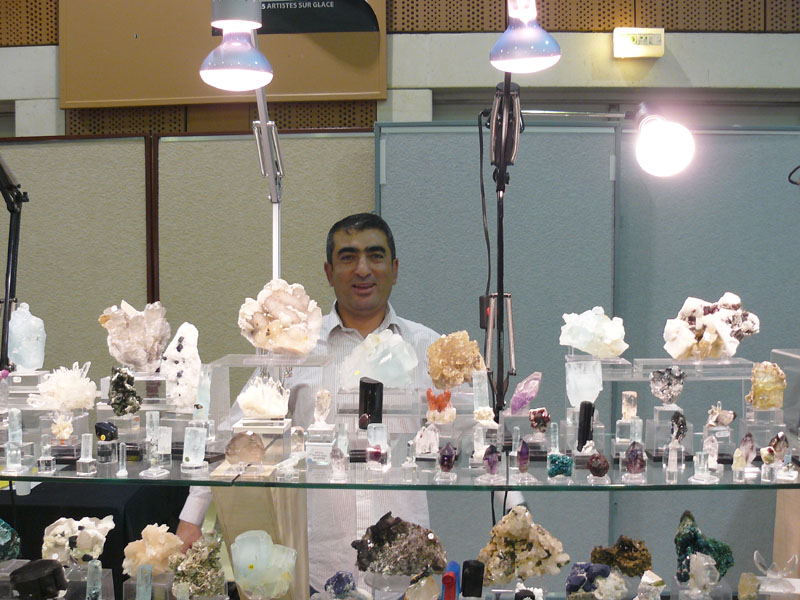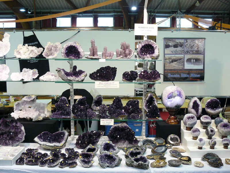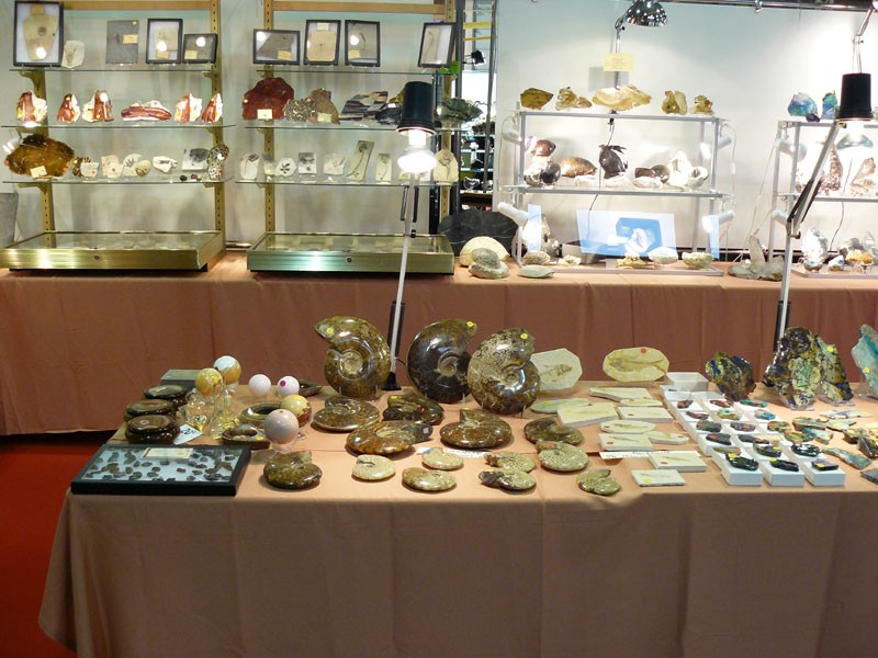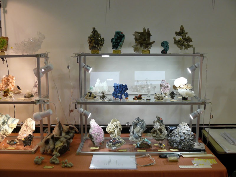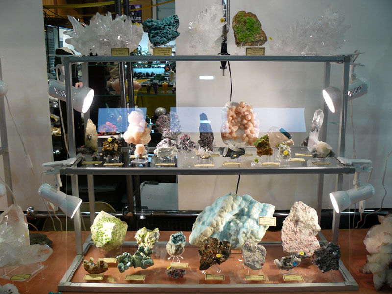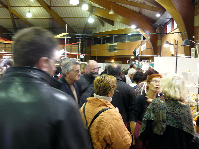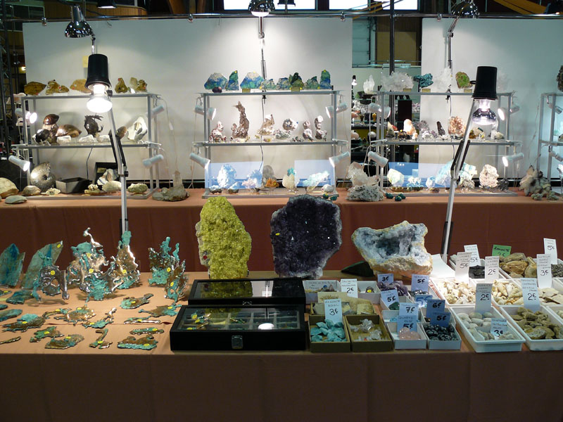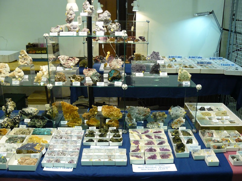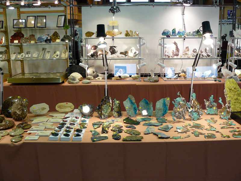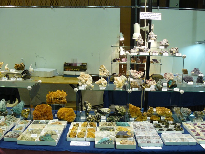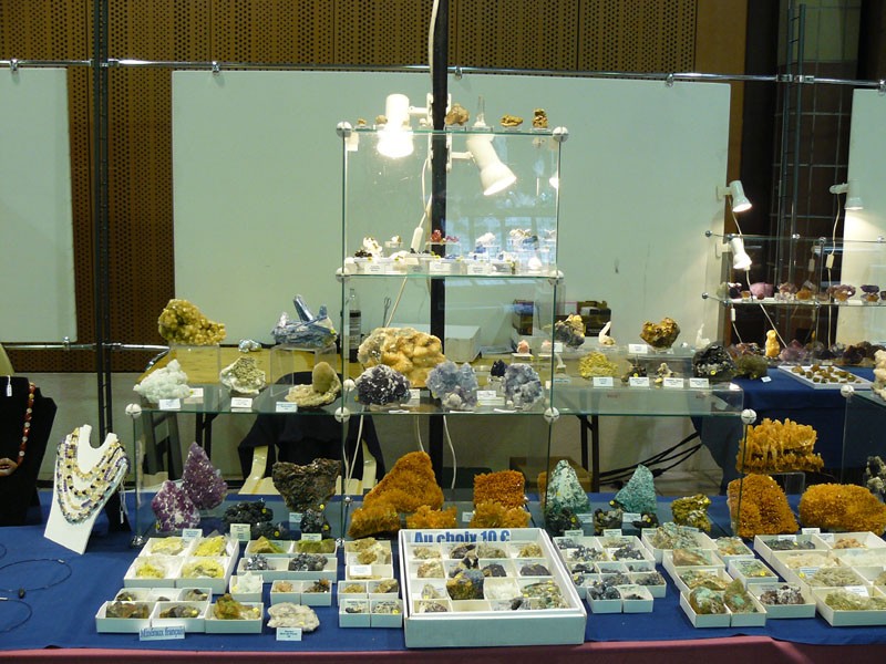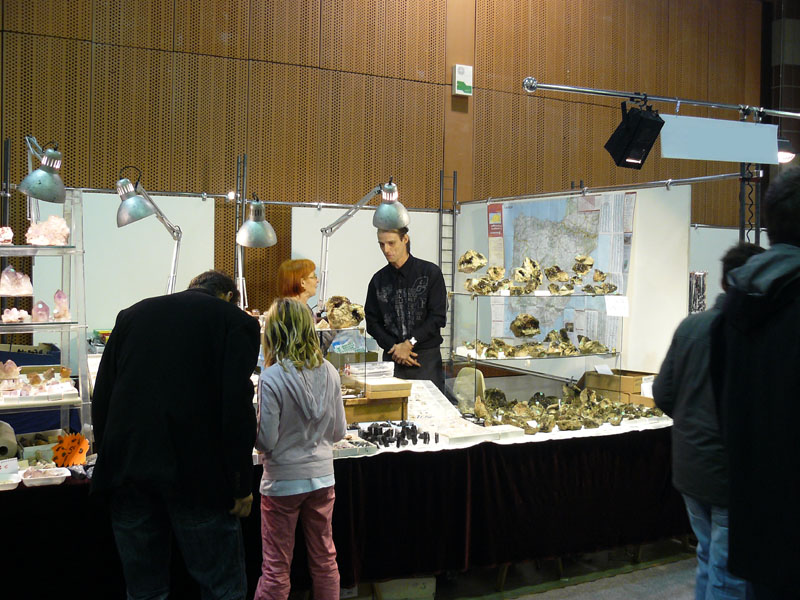 Cadre de la bourse et installation des exposants. A noter, que chacun et libre de diposer les tables de son stand, comme bon lui semble, concept que je trouve génial. Par contre, il est demandé aux exposants de garder un petit mètre de table, afin de présenter un thème en rapport avec la minéralogie.