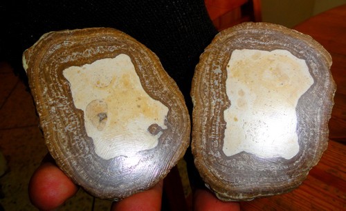 "Coucou je suis retourné aux oncolites , ''stromatolites'' , il n'y en a pas énormément , mais quelques pièces assez simpas , sciées immédiatement après la récolte , j'espère que quelqu'un pourra m'indiquer une façon pour les POLIRS ... Merci A+"