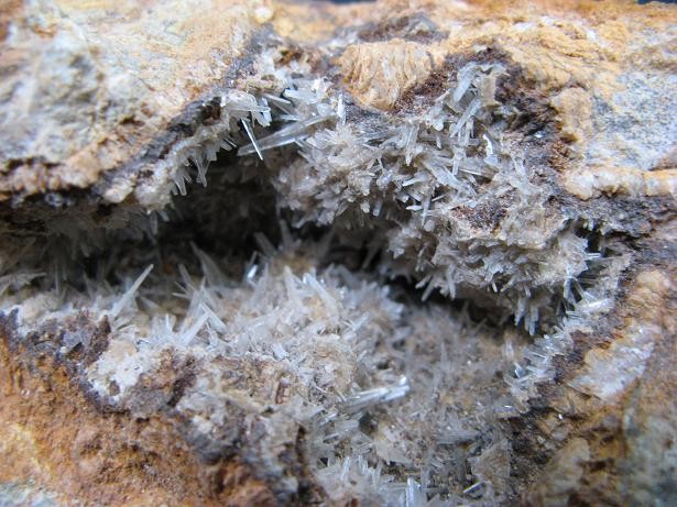 on a trouvé un échantillon du même type dimanche, je pensais à de la calcite. C'est les cristaux qui font pencher plus vers aragonite ?