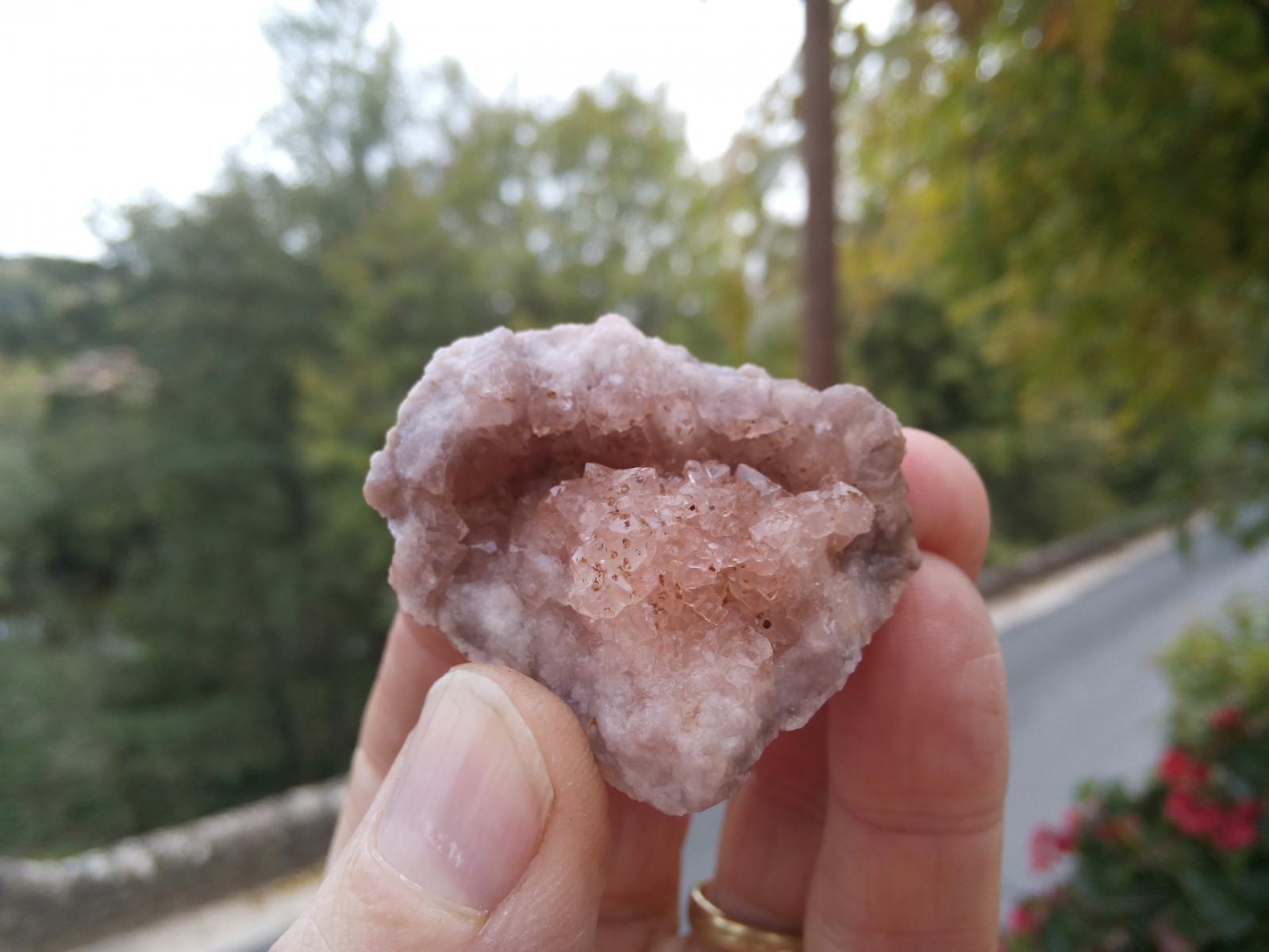 il s'agit d'un gisement de géodes de quartz rose accompagné ou non de dolomie blanche. Les géodes ne sont pas très grosses (taille moyenne 5 cm) mais on ne peut pas revenir bredouille.