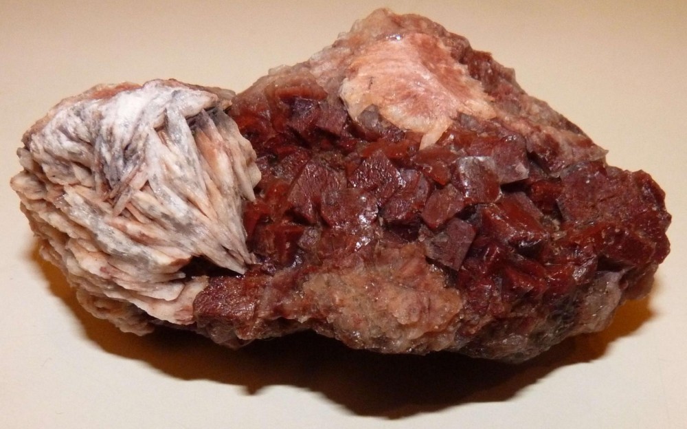 Baryte (le rose) et Quartz (le blanc). Une question : comment se forme ce type de structure, hyper courante à Lantinié ? (5-6 cm)
