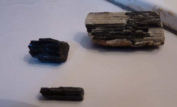 Allez, juste deux dernières photos... Cette fois de Saint Chely d'Apcher, dont on a pu voir des pièces impressionnantes ! Celles ci ne sont, sans aucun doute, pas formidables, mais il faut bien que les débutants osent poster leurs trouvailles ! La petite au 1er plan fait 2 cm de long et est bien brillante (ce qui ne se voit pas du tout...)