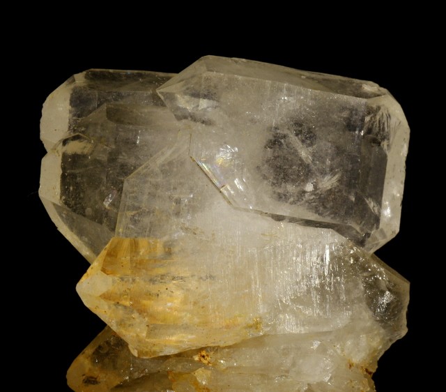 Quartz du 64 (2,5 cm de hauteur) avec une curiosité : un autre cristal de quartz avec des tons bleutés et ambrés. L'ambré provient d'infiltration d'oxydes, mais le bleuté me pose problème...