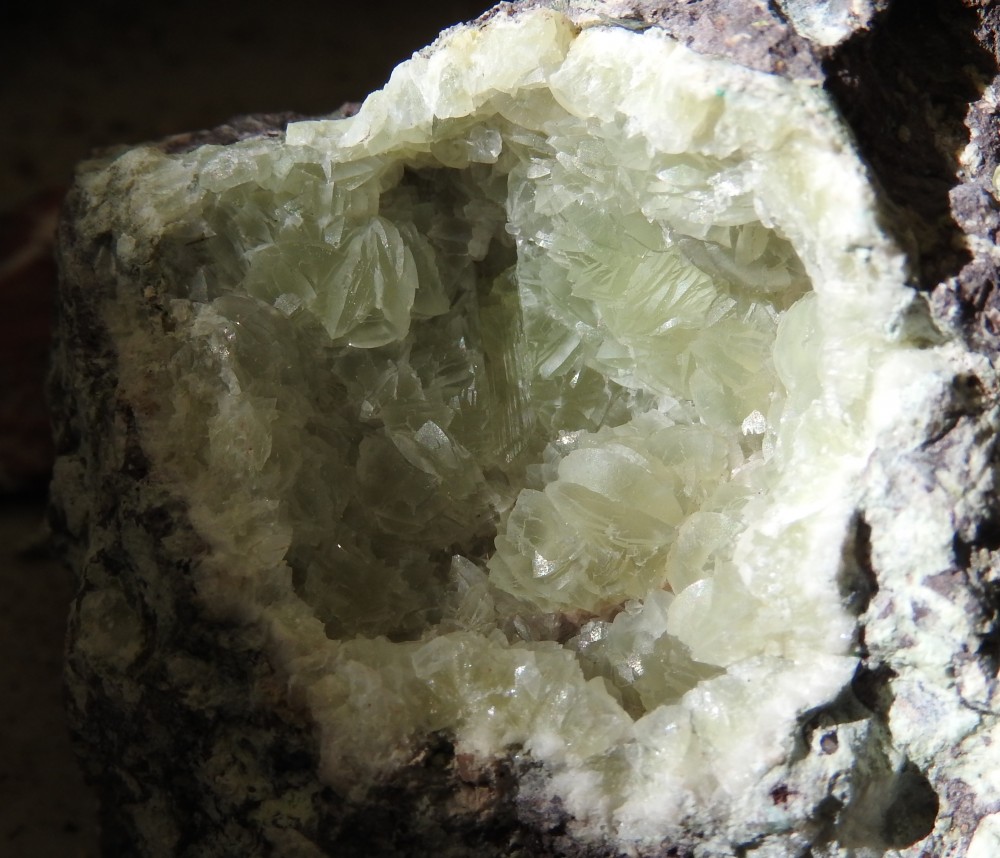 8- et une petite association  préhnite, calcite, chryso, le tout dans la géode, pour terminer: