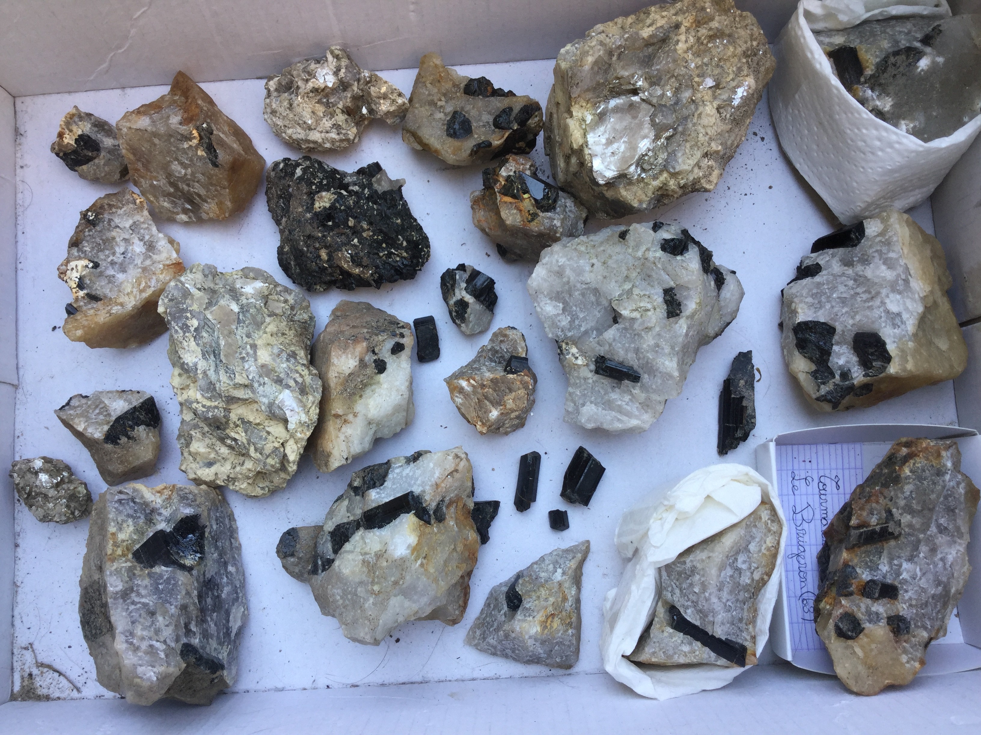 tres sympas  toutes ces dernieres decouvertes, bravo pour ces premieres fluos, jolis cristaux, ces tourmalines du 63, et ffuiii, les p'tites choses de Belledonnes , anastase de l'oisan et quartz à âme de lauziere, ça donne envie de prendre de l'altitude tout ça....ici retour d'une sortie avec deux trois andradites dans mon cabas;