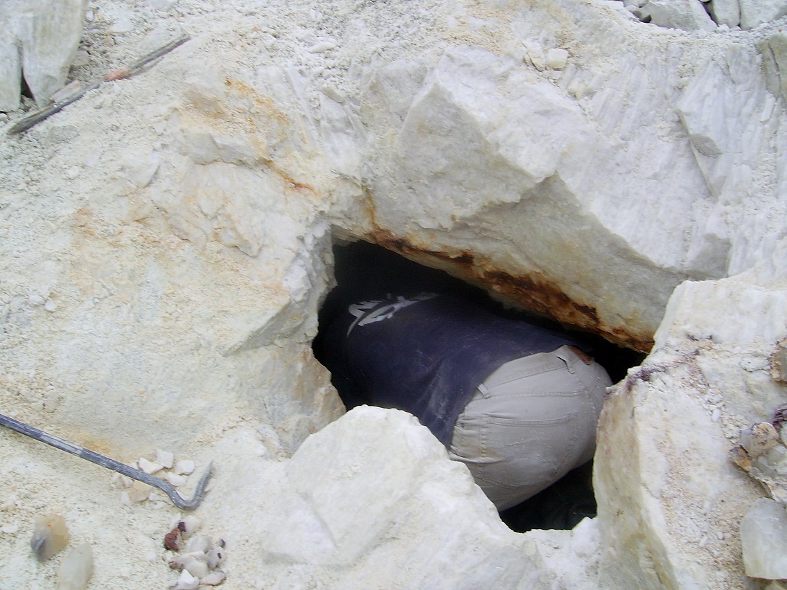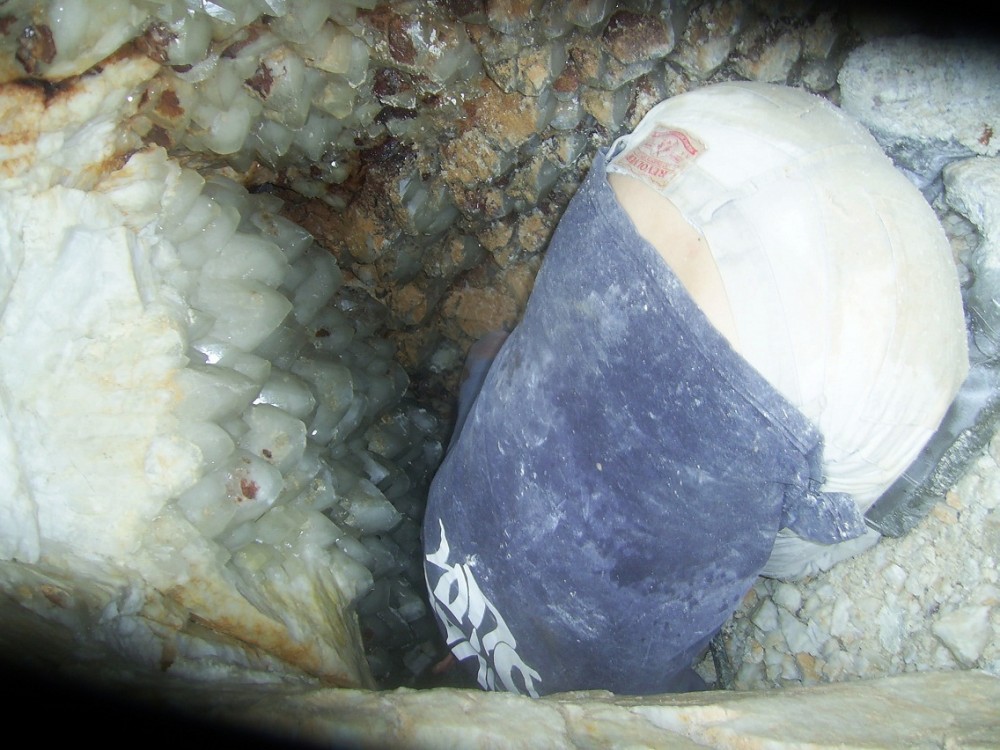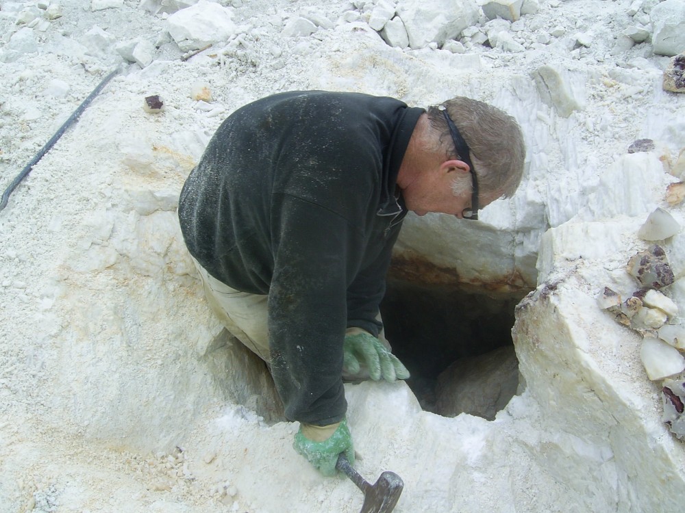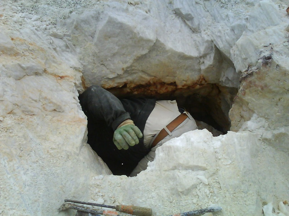 Bonjour,quand nous avons trouvé la poche,on voyait les pointes sur la paroi,mais c'étais impossible d'y accéder.Il a fallut bosser pendant près de 2 heures pour l'élargir et sortir tout les déblais qui se trouvaient a l'intérieur dont un gros bloc qui obstruait l'entrée.Ensuite,on a remonté a l'aide d'un sac,en se relayant, le reste des déblais avant de pouvoir travailler.Après ,nous allions chacun a notre tour pour sortir les pièces.Je peux vous dire que nous avons laissé sur place des blocs cristallisés des 2 côtés de plusieurs dizaines de kgs.Je sais bien que ces quartz ne sont pas d'une qualité exceptionnelle,mais entrer dans une poche de cette taille restera pour moi un très bon souvenir , cela ne nous arrive pas si souvent par chez nous! De plus ces quartz sont assez curieux, car,pour la plupart, ils sont bicolores avec des formes pas très courantes pour le secteur,ils manquent un peu de brillance,mais je voulais quand même partager cette découverte et vous les montrer!