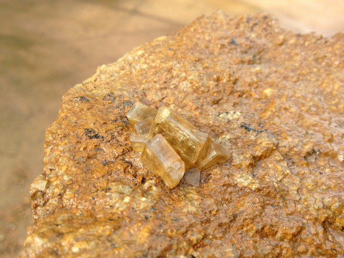 Lors d'une virée pluvieuse à Plouharnel dans le Morbihan, j'ai trouvé quelques grenats et ce qui pourrait correspondre à de la chalcopyrite ou "or des fous".