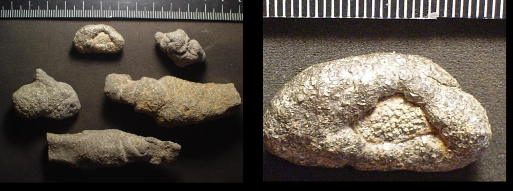 Je vous montre des supposées coprolithes trouvées sur le même lieu, mais pas du tout de pyrite.