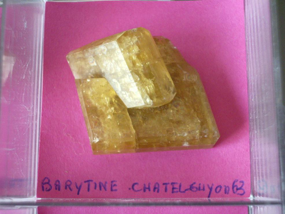 voici un cristal de barytine d'auvergne mais ne me demandé pas sa provenance exacte,je ne la connais pas.
