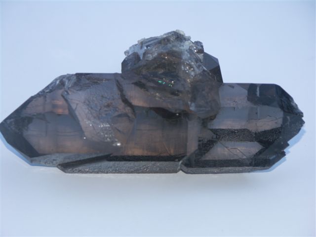 En voici un autre cristal de quartz fumé que j'adore (biterminé de 15cm, origine bassin de Talèfre) découverte personnelle.