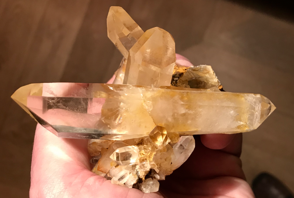 quartz limpides avec inclusions de je ne sais pas quoi (rutile et limonite ?)