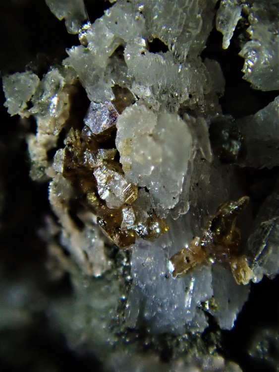 y a de tout aussi..calcédoine, agate, quartz, calcite avec plusieurs formes, au moins 5 recencées juste par de moi, et 8 avec d'autres gens, baryte, goethite etc etc...