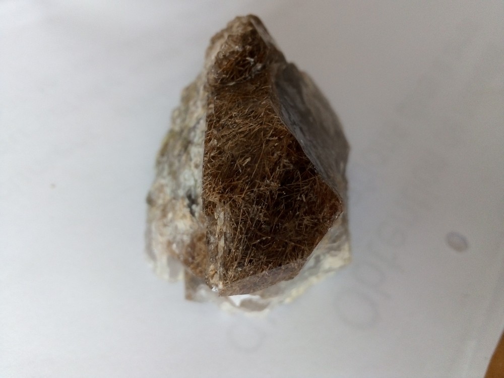 une vieille pièce de l'an dernier, été 2017, quartz avec inclusions de chlorite brune, anatase de qqs mm et rutile en gerbe en cheveux d'ange