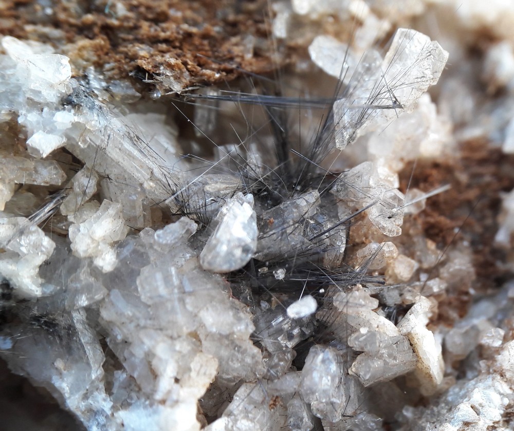 En parlant de ça, trouvailles fraîches qui m'ont bien mis les poils ( Rutile sur Albite et quartz // Lauzière, comme d'habitude) . :siffler: