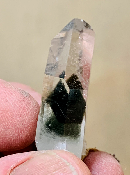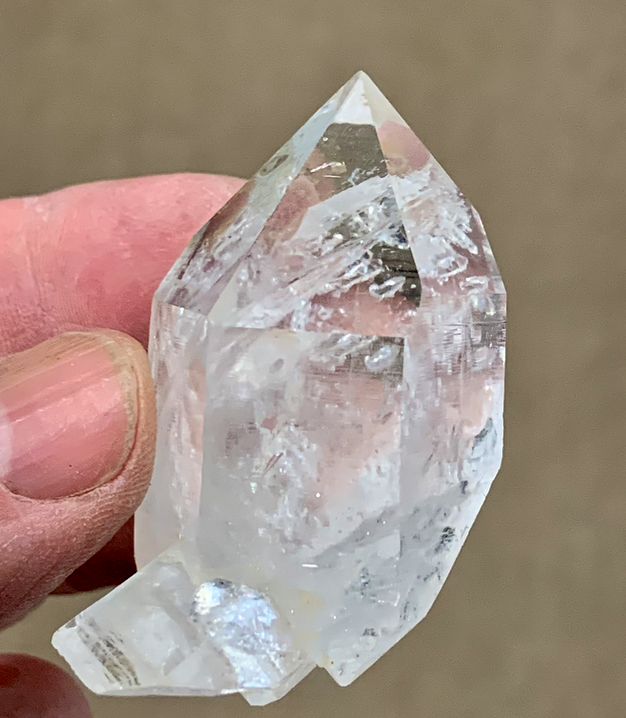 Quartz cristal de roche ; tête d'un individu cassé et cicatrisé, donnant un bi-terminé  [35mm]