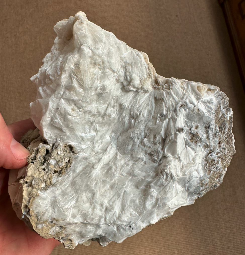 Stibine, cristaux lamellaires de 5cm, poids 90 gr. Montagne de Pormenaz, Juillet 2023.