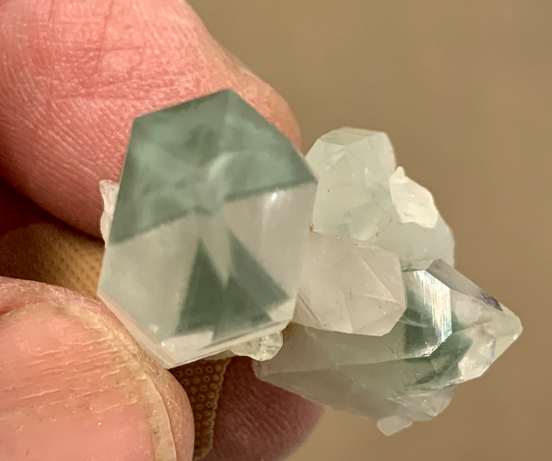 C'est ce que j'appelle les "milieux de géodes", où comme dans les 'gem-nodules' le cristal a cassé en dehors de la zone sans inclusions, " les crapauds", zones de faiblesse.