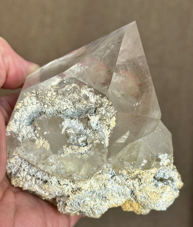 Quartz hyalin montrant des inclusions  caverneuses de Cookeite ; Cookeite [140mm]