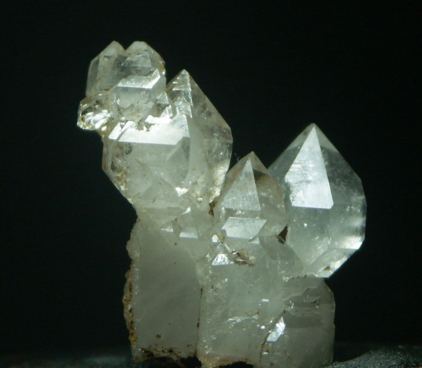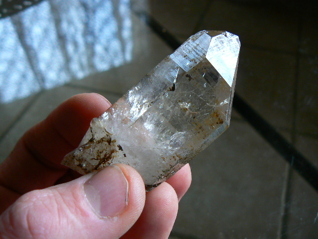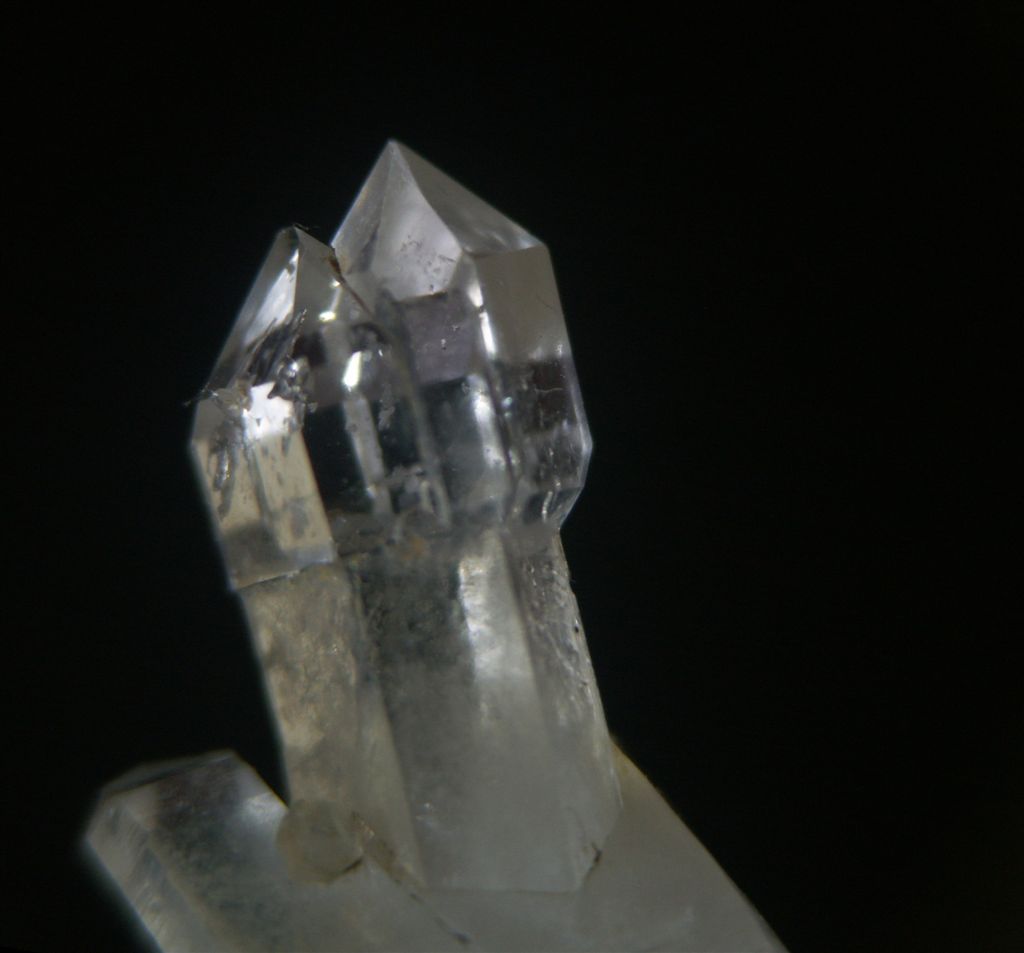 Donc ramassé sur le glacier de Talèfre en 89, Quartz enfumé 15x35, les pointes sont un peu pignées et il manque dix bons kilos de protogyne derrière trimées à la scie au labo.