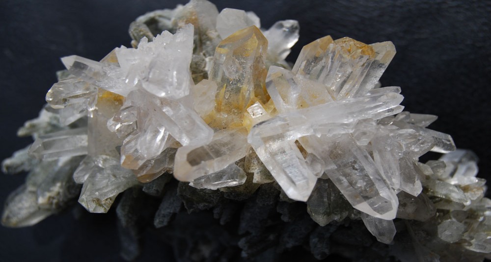 Dans la zone houillère briançonnaise, notamment en Savoie, il arrive que les fentes alpines tapissées de quartz livrent des cristaux avec des fines inclusions de schistes noirs anthracifères ; alors pourquoi pas, à partir du moment où il y a des passées de graphite pur dans ces terrains (déformés et métamorphisés).