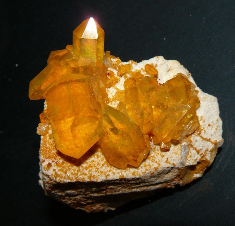 Pour Picarosse : est-ce vraiment de la citrine ? N'est-ce pas tt simplement du qrtz avec des oxydes de fer ? On trouve assez svt des qtz (svt dans dans des gros filons massifs d'ailleurs) avec ces oxydes qui peuvent être compris dedans. La vraie citrine, c'est autre chose. Maintenant, si cela devait toutefois en être, ce serait unique à ma connaissance...