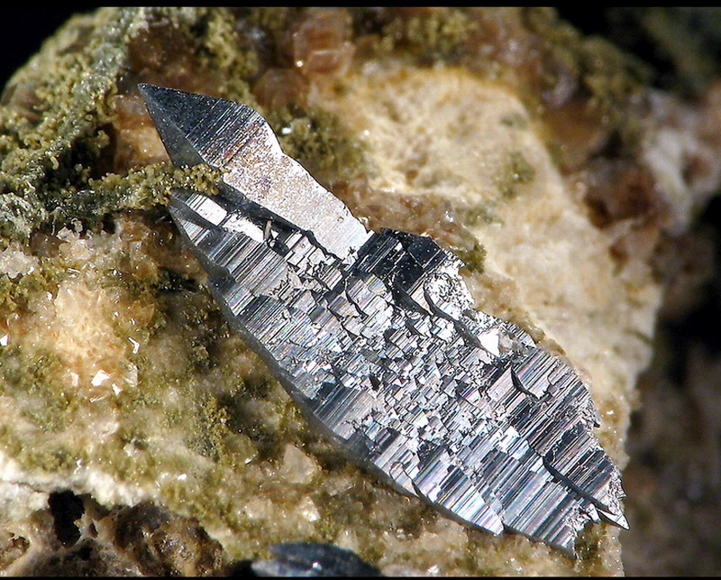Pour ce qui est du lamellaire, j'ai une forte suspicion sur certains quartz : ils sont malheureusement petits, rares, et tachetés de chlorite, ce qui rend l'identification difficile. Mais ces quartz ont une croissance différente des autres. On retrouve par exemple des quartz plats, très fins, avec des stries obliques (comme pour l'habitus du Cipo).