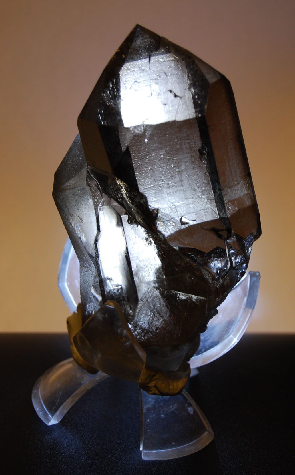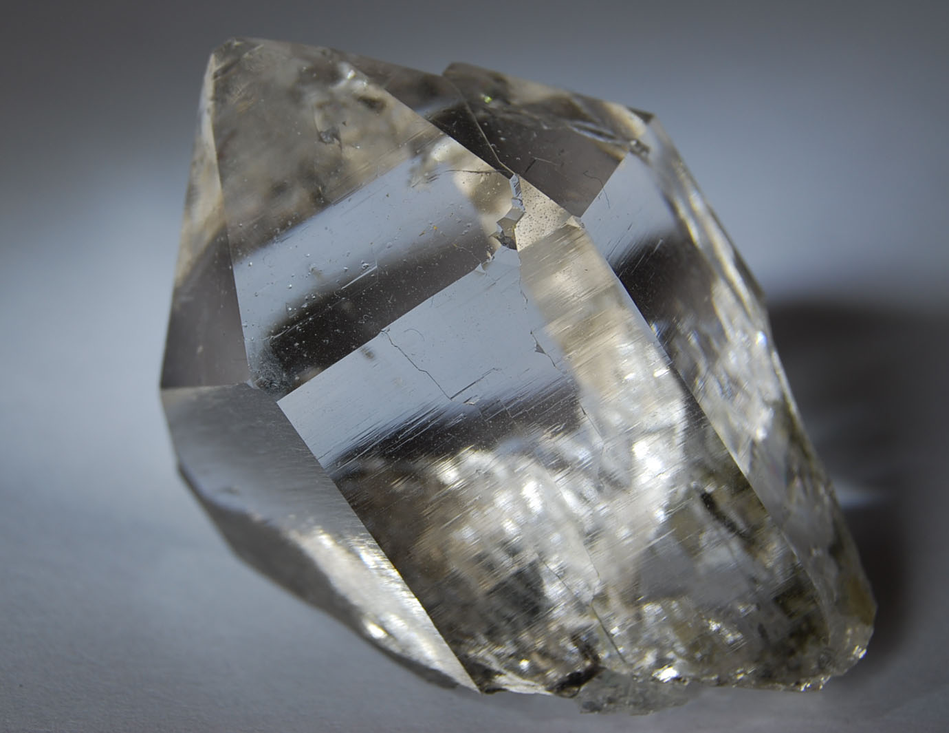 Quartz maclé La Gardette, Massif des Aig. Rouges, 1,5 x 1,5 cm (la pointe droite a été légèrement "sablée" par les eaux sous-glaciaires...)