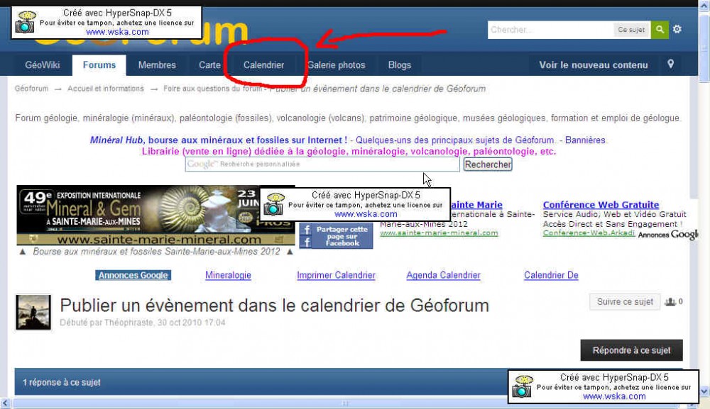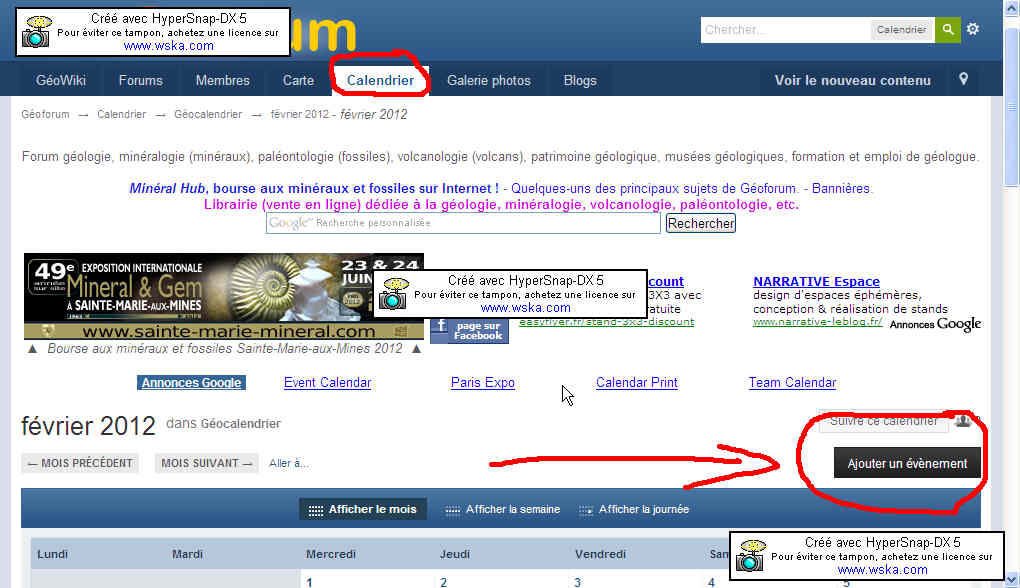 On n'oublie pas de mettre son évènement dans le calendrier ! Comme dit ci-dessus, cela présente l'avantage de voir l'évènement affiché sur la page d'accueil de geoforum un bon moment avant la date de lévènement en question ! Donc meilleure accroche !