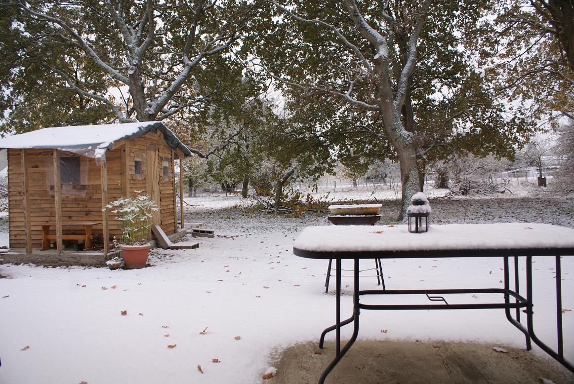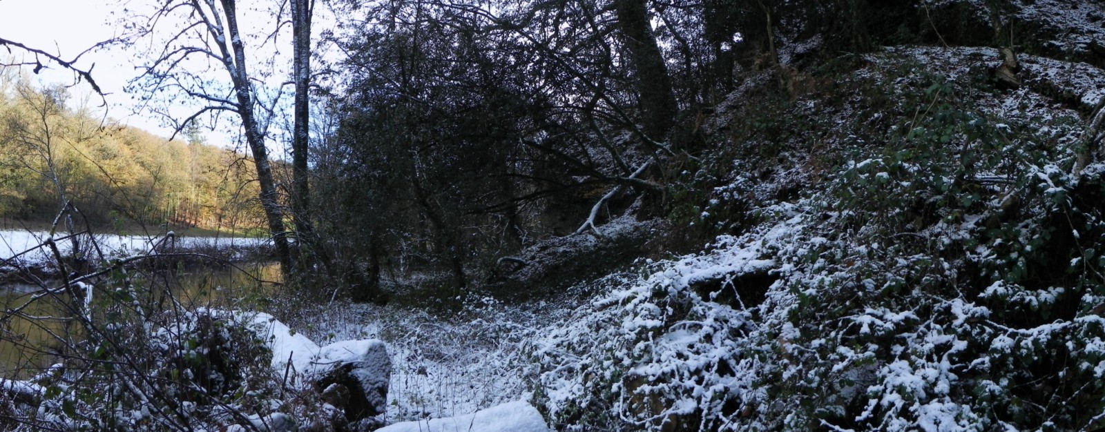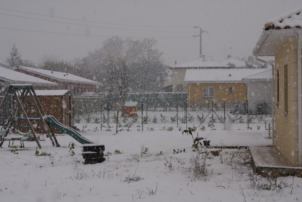 Il n'échappe évidemment pas. -8°C de nuit à 225 m, cela va encore. Hier max -5°C pour la journée. Un peu de neige jusqu'à présent, pas trop: 10 cm.