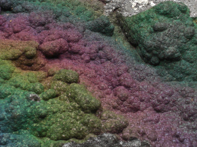 Il est de bon augure dans une mine de fer de trouver ce type de minéralisation car elle signale la présence de cuivre et la minéralogie qui va avec .