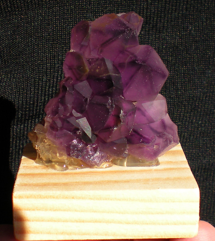 Et moi, ce qui m'intéresse, ce ne sont pas les comparaisons de couleurs, même si parfois, certaines améthystes sont bien pâles et peu intéressantes, et que dans ce cas particulier (peu de relief, pas de minéralogie), c'est le seul critère qui permette de "rattrapper" la valeur de la pièce.