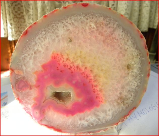 Rose rocks are aggregates of barite (barium sulfate) crystals and sand whose iron content gives them a reddish hue. Rose roches sont des agrégats de baryte (sulfate de baryum) cristaux et du sable dont le fer contenu leur donne une teinte rougeâtre. The barite crystals form a circular array of flat plates, giving the rock a shape similar to a rose blossom. Les cristaux de barytine former un réseau circulaire de plaques planes, ce qui donne à la roche une forme semblable à une rose fleur. Rose rocks appear either as a single rose-like bloom or as clusters of blooms, with sizes ranging from pea sized to four inches (20 cm) in diameter. Rose roches apparaissent soit comme une rose-comme seule fleur ou comme des grappes de fleurs, avec des tailles allant de pois de taille à quatre pouces (20 cm) de diamètre. The rose rock was selected as the official state rock of Oklahoma in 1968. [ 1 ] La rose de roche a été choisie comme la roche officielle de l'État de l'Oklahoma en 1968. [1]