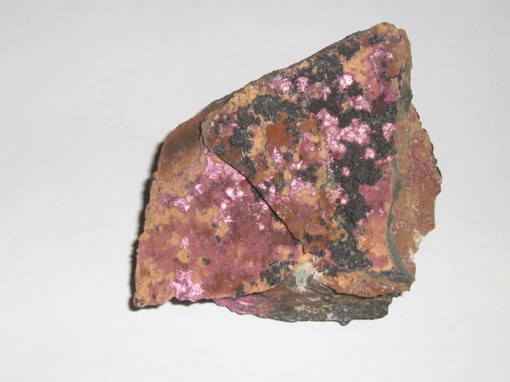 Rhodochrosite rouge-rose avec manganite cristallisée de la mine N'chwaning I , Afrique du Sud, pièce ancienne (et oui, elle aurait pu aller aussi bien sur le fil "minéraux rouges"):