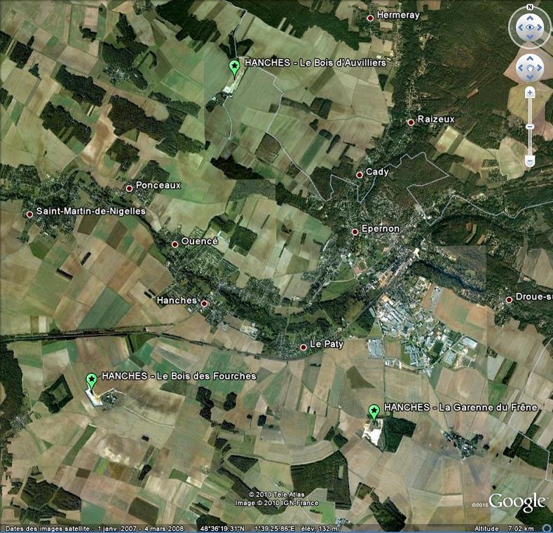 Pour ce qui est des limites communales, on dénombre 3 carrières à Hanches. Je ne suis pas encore allé sur place pour voir ce qu'il en était mais ça ne serait tarder...