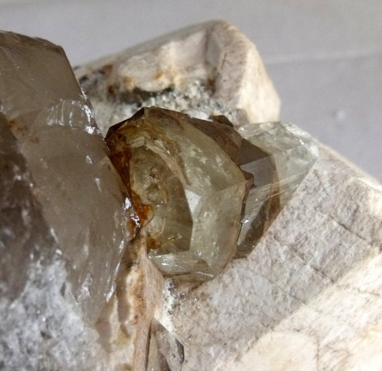 Hm hm, oui non sinon on dirait bien 2 cristaux imbriqués sans suivre de loi particulière, faudrait plein de photos sous d'autres angles, avec de beaux reflets sur les faces cristallines, et regarde aussi si le petit cristal rentre dans l'autre, par transparence .