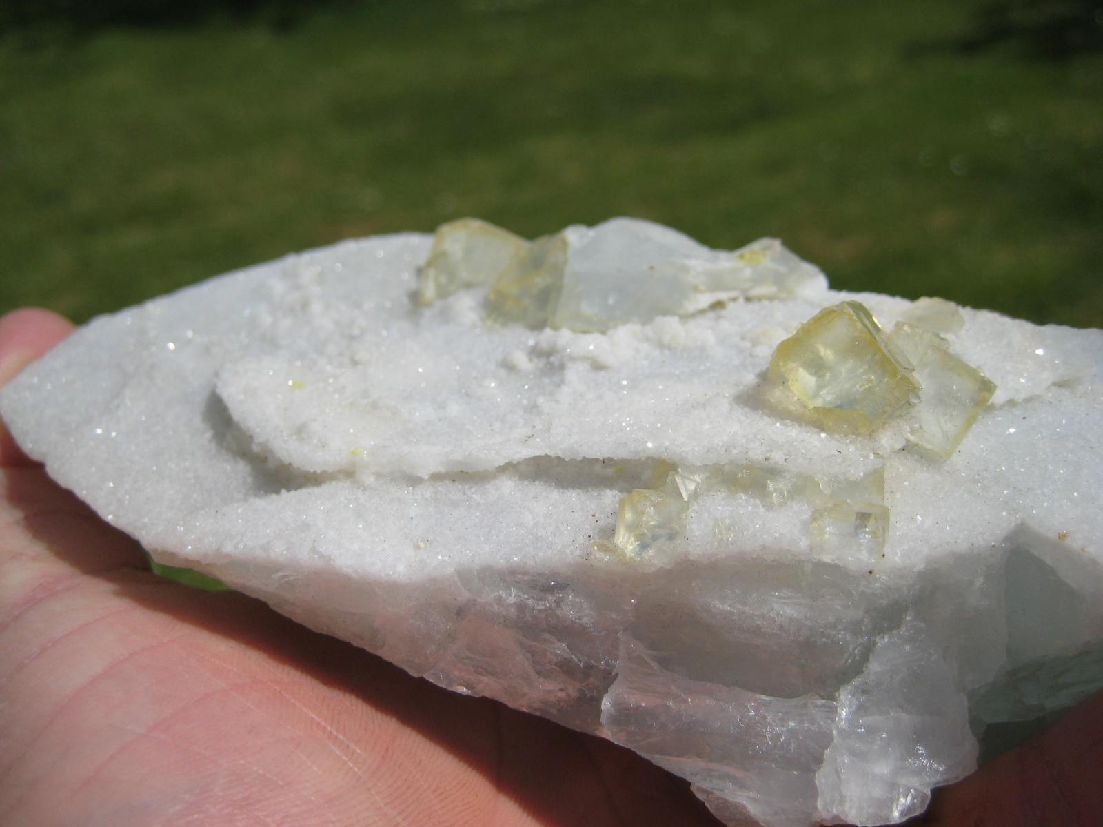 pour info : la calcite est présente dans le Morvan (argentolle, luzy ...) y compris dans le 58, mais le faciès de ta calcite ne correspond pas vraiment à ce qui a été trouvé, de plus tes cristaux sont plus de type de ceux que l'on rencontre dans les carrières de calcaire.