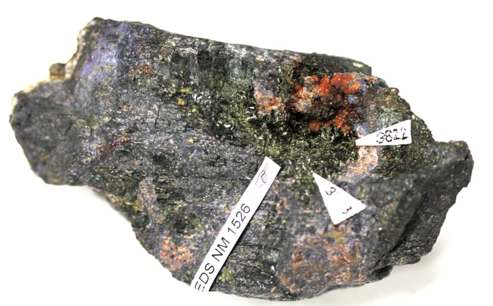 Ce spécimen acquis avec la coll. Béhier mais vérifié plus recemment présente de la stewartite. Elle avait aussi été déterminé dès les années 1950 (à ce propos cf. Chatenet, 2008) par Mary Emma Mrose (1910-2003) qui correspondait avec Béhier et avait déterminé avec une grande justesse la plus grande partie des nouvelles découvertes de terres rares malgaches. Miss Mrose était la maitresse de Clifford Frondel, le plus grand minéraligiste du XXe siècle, comme quoi même en minéralogie professionnelle on peut mélanger l'utile et l'agréable !