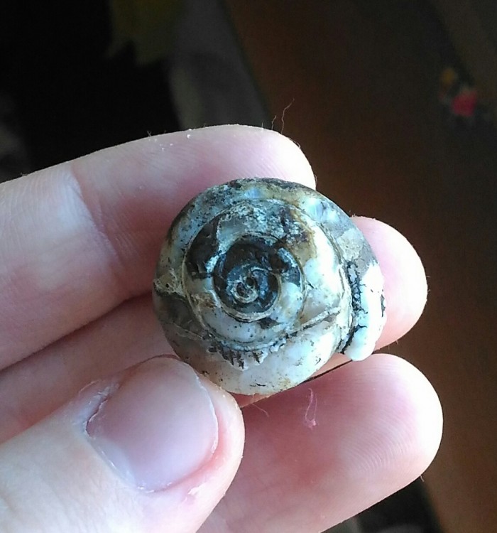 le seul truc dommage... elle à du être extraite comme une cochonne de la roche mère car la calcite au niveau de la zone grise est bien amochées... on voit les traces de burin.
