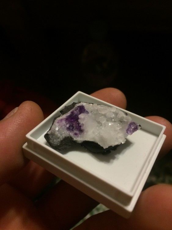 au passage, petit échantillon vif mais dont les cristallisations on subit un choc...Fluorine de la carrière de Wallers Trelon, F-59