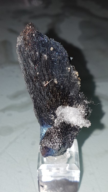 La chalco cest difficile à dire d'où elle vient. J'en ai trouvé des caisses au Burc à l'époque mais pas avec du quartz ou de la fluo dessus. Ton spécimen à un peu de l'un ou l'autre dessus .Mais il est très possible qu'il en vienne ! Barite du perou confirmé